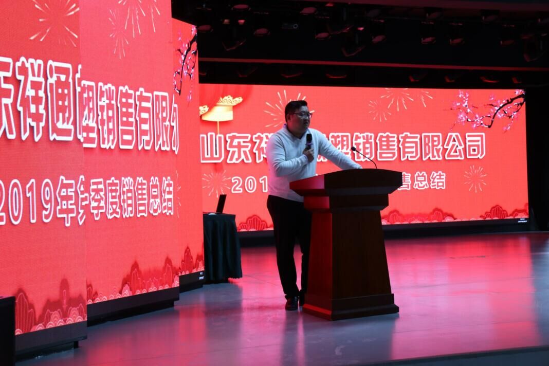 2019年4月7日上午9時,山東祥通橡塑銷售有限公司一季度銷售工作會議在集團(tuán)祥通新雅多功能演播廳召開。會議對集團(tuán)公司一季度銷售工作進(jìn)行了認(rèn)真地總結(jié)和分析,并依據(jù)各地區(qū)市場一季度的客觀情況對銷售部、區(qū)域直營部、公司直營部二季度任務(wù)目標(biāo)進(jìn)行了個別調(diào)整,為沖刺二季度全面完成上半年銷售任務(wù)和目標(biāo)進(jìn)行了再研判和再部署。集團(tuán)公司董事長張建魯、總經(jīng)理張振宇、副總經(jīng)理王冬、銷售總監(jiān)王長友和各銷售部、區(qū)域直營部經(jīng)理等相關(guān)部室及一線銷售人員約60多人出席了會議。