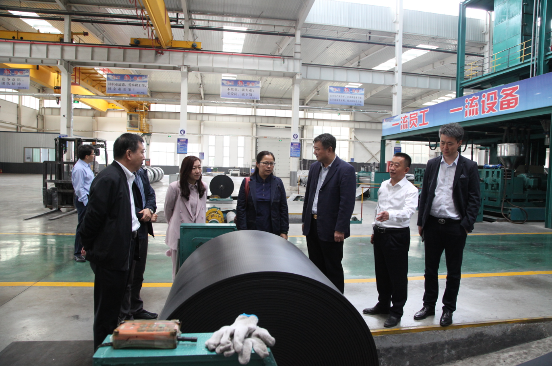 彭靜一行首先來到唐口公司輸送帶和帶芯生產(chǎn)車間,視察了該車間的生產(chǎn)現(xiàn)場(chǎng),并不時(shí)就有關(guān)情況咨詢相關(guān)人員。在視察中張建魯董事長(zhǎng)就祥通集團(tuán)前三個(gè)季度的生產(chǎn)、銷售、研發(fā)、環(huán)保和市場(chǎng)開拓等情況簡(jiǎn)要向彭主任一行作了匯報(bào),并就集團(tuán)下一步發(fā)展進(jìn)行了介紹。