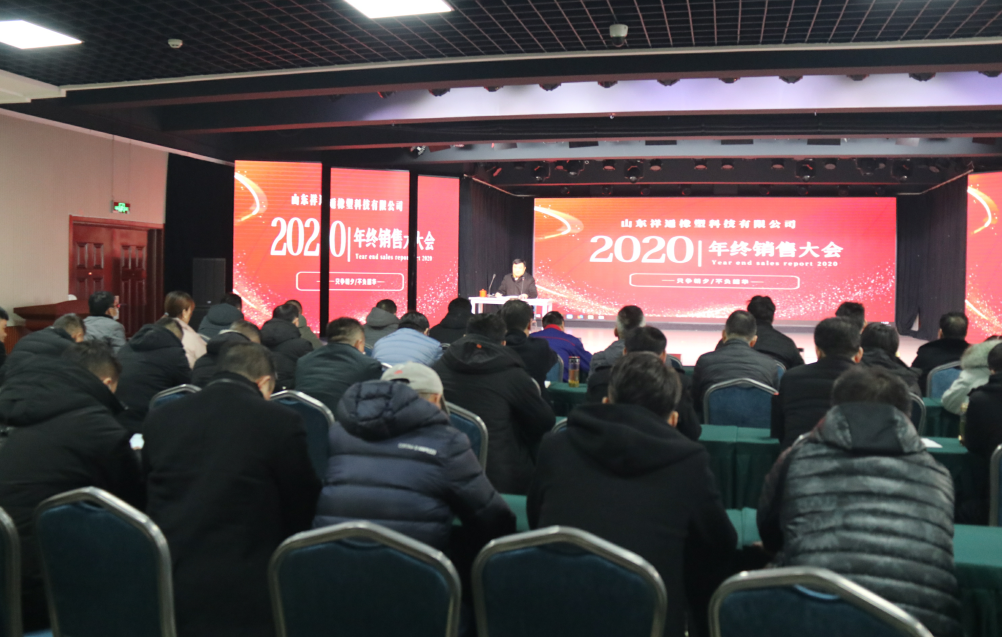 2021年1月3日,以“總結成績堅定信心 謀劃目標砥礪奮進”為主題的山東祥通橡塑科技有限公司2020年終銷售總結大會在祥通多功能廳召開。本次會議旨在總結過去一年祥通科技公司銷售工作取得的成績和分析存在的問題,同時為2021年銷售工作定調(diào)子、指方向、鼓干勁。集團董事長張建魯,集團總經(jīng)理張振宇,集團常務副總經(jīng)理王冬,集團生產(chǎn)常務副總經(jīng)理姜廣濤,集團副總經(jīng)理杜允峰,銷售總監(jiān)王長友和各銷售部經(jīng)理及銷售骨干50余人參加了會議。