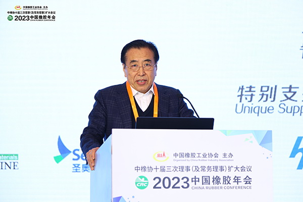 中國橡膠工業(yè)協(xié)會高級副會長、主席團(tuán)企業(yè)執(zhí)行主席,國家橡膠與輪胎工程技術(shù)研究中心主任,賽輪集團(tuán)股份有限公司黨委書記、名譽(yù)董事長袁仲雪,作了《企業(yè)首先要做好確定的事》的發(fā)言報(bào)告。