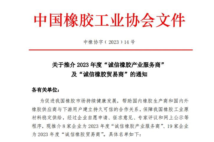 2023年度誠(chéng)信橡膠產(chǎn)業(yè)服務(wù)商
