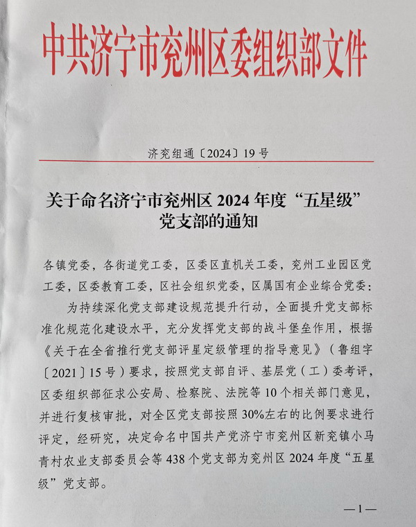 按照黨支部自評、基層黨(工)委考評,區(qū)委組織部征求公安局、檢察院、法院等10個相關(guān)部門意見,并進行復(fù)核審批,近日,山東祥通膠帶有限公司黨支部被中共濟寧市兗州區(qū)委組織部評為兗州區(qū)2024年度“五星級”黨支部。這一榮譽的獲得,不僅是對公司持續(xù)深化黨支部規(guī)范化、標(biāo)準(zhǔn)化建設(shè)和充分發(fā)揮黨支部戰(zhàn)斗堡壘作用的高度肯定,也是對公司未來發(fā)展的鼓勵和鞭策。