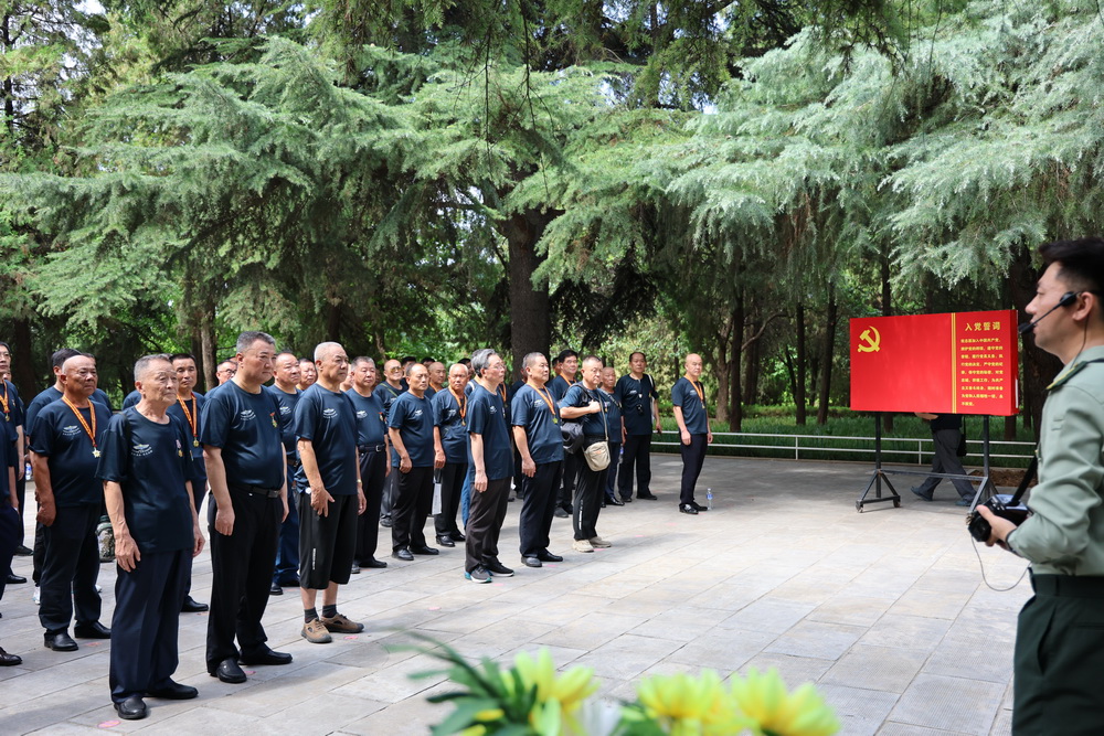 在烈士公墓,一場(chǎng)莊嚴(yán)的愛(ài)國(guó)主義活動(dòng)正式舉行。老兵們整齊列隊(duì),由四名老兵代表龍儒秋、林存弟、孫向軍、宋學(xué)賢向烈士敬獻(xiàn)花籃,花籃上的緞帶寄托著他們對(duì)烈士的無(wú)限哀思。全體戰(zhàn)友們肅立默哀,鞠躬致禮,表達(dá)著最崇高的敬意。原空七軍雷達(dá)二十五團(tuán)指揮連連長(zhǎng)宋學(xué)賢同志代表老兵們講話,他的話語(yǔ)樸實(shí)而真摯,回顧了那段難忘的戰(zhàn)斗歲月,緬懷了犧牲的戰(zhàn)友,也激勵(lì)著在場(chǎng)的每一位老兵不忘初心、牢記使命。之后,老兵張瑞祥領(lǐng)誓,全體老兵舉起右拳,莊嚴(yán)地重溫軍人誓詞,那鏗鏘有力的誓言回蕩在烈士公墓上空,彰顯著他們雖已退役但軍人本色不減的堅(jiān)定信念。
