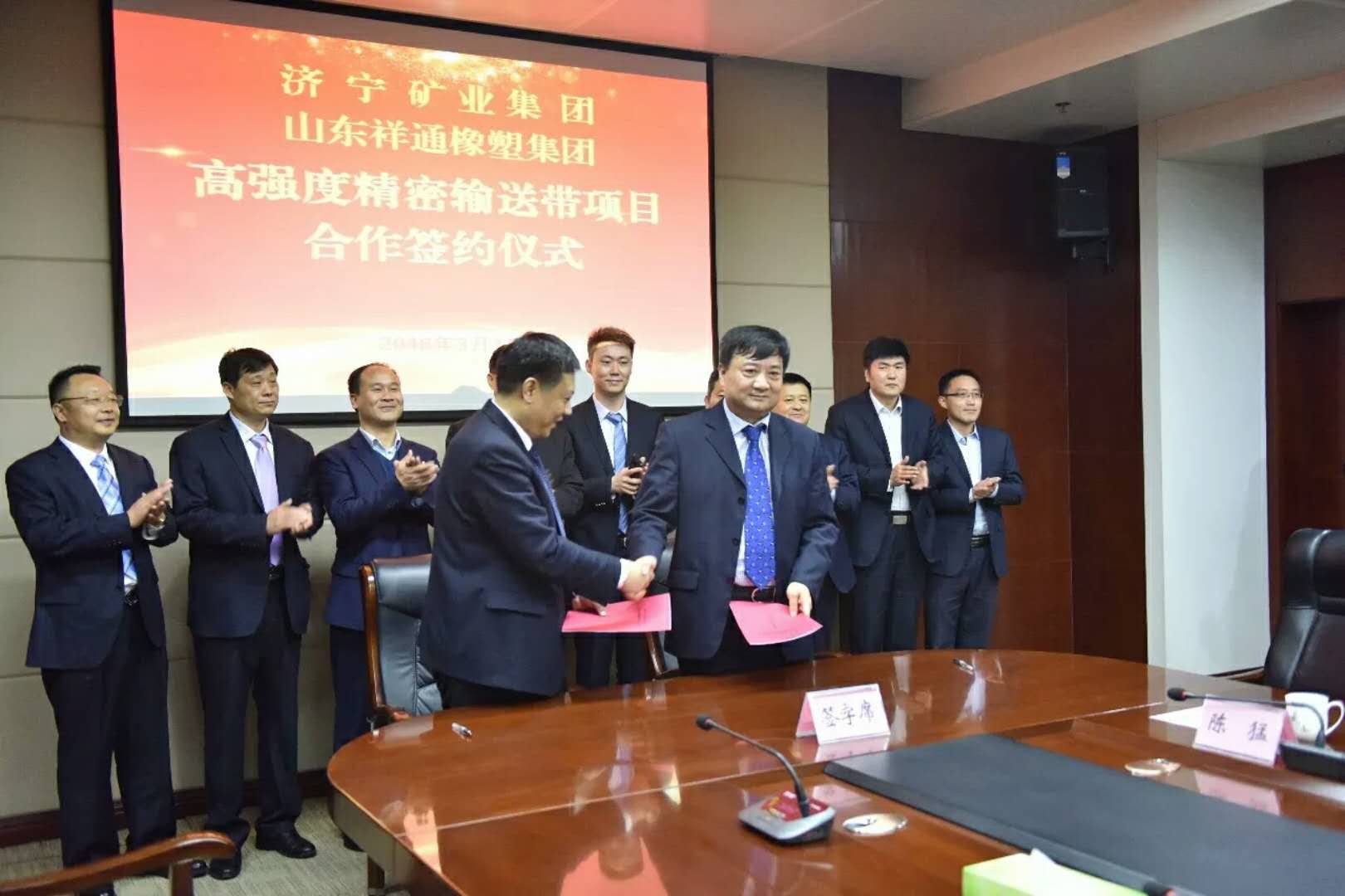 草木萌發(fā),春山可望。三月初的孔孟之鄉(xiāng)、運河之都——濟寧,處處散發(fā)著濃濃的早春氣息。34日上午,由濟寧礦業(yè)集團與山東祥通橡塑集團聯(lián)合出資,且由濟寧礦業(yè)集團控股組建的混合經(jīng)濟體山東濟礦祥通橡塑有限公司高強度精密輸送帶項目合作簽約儀式在濟礦集團隆重舉行。濟寧市國資委副主任馬平,濟礦集團總經(jīng)理張廣宇,山東祥通橡塑集團董事長張建魯?shù)扔嘘P(guān)負責(zé)人出席了簽約儀式。儀式由濟礦集團副總經(jīng)理魏忠勛主持。