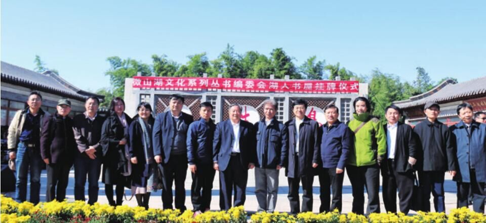10 :00,出席揭牌儀式的領(lǐng)導(dǎo)和嘉賓一行在著名作家、省政協(xié)常委、市人大常委會(huì)原副主任、“湖人書屋”住持人殷允嶺的陪同下,大家興致勃勃地參觀了微山島荷園。在荷園“湖人書屋”,有關(guān)領(lǐng)導(dǎo)首先為湖人書屋舉行了簡(jiǎn)短的揭牌儀式,并參觀了書屋。記者注意到,湖人書屋坐落在荷園西北方向,其外觀結(jié)構(gòu)為兩層的古典閣樓式建筑,在湖光山色的映襯下顯得十分壯觀。一樓中央部位的書柜中陳列著王隋蓮山東副省長(zhǎng)、張建魯主席、陳小霞等的著作捐贈(zèng)專柜及湖人書屋主人殷允嶺著作專柜,周偉的墻壁上掛滿了著名藝術(shù)家的作品。二樓是休閑室,站在陽臺(tái)遠(yuǎn)眺,波光粼粼的微山湖和萬畝荷花盡收眼底,仿佛自身就置于這巨幅美麗的山水畫之中。參觀中市作協(xié)主席張建魯先生向記者們介紹說,地處波光瀲滟、中國(guó)江北最大淡水湖的湖心島,荷園里的湖人書屋,共聚于江南海北可謂最大、最有特色的集藏書、編著、書畫、演繹、景觀于一體,真是談笑皆鴻儒,往來均名士。而湖人書屋的主人、創(chuàng)辦者——殷允嶺老師。他 1953 年就出生在這微山島上,他對(duì)微山湖充滿了割舍不斷的深切情感,他創(chuàng)作的不少作品多跟微山湖有關(guān)。他本人就是一座內(nèi)涵豐厚的“書屋”。殷允嶺老師本來就是我們濟(jì)寧市文學(xué)創(chuàng)作的領(lǐng)軍人物,湖人書屋將作為濟(jì)寧市作家們體驗(yàn)生活、相互交流、促進(jìn)創(chuàng)作的堅(jiān)實(shí)基地,更是作家們構(gòu)思巨著、創(chuàng)作精品的“加油站”和“孵化器”。我相信:在殷老師的感召和引領(lǐng)下,濟(jì)寧市作家們將創(chuàng)作出無愧于我們偉大時(shí)代的精品佳作!稍后,領(lǐng)導(dǎo)和嘉賓們又來到了緊鄰湖邊的湖人書屋創(chuàng)作基地參觀,并舉行了有關(guān)單位創(chuàng)作基地的揭牌。記者注意到,在創(chuàng)作基地院門入口處,右側(cè)掛有《微山湖文化叢書》編委會(huì)編輯部的牌子,左側(cè)依次掛有《山東文學(xué)》、山東人民出版社、《星星詩(shī)刊》、《詩(shī)探索》編委、濟(jì)寧市文聯(lián)、濟(jì)寧市作協(xié)等單位的創(chuàng)作基地牌子。在有關(guān)工作人員的指揮下董事長(zhǎng)、市作協(xié)主席張建魯為市作協(xié)創(chuàng)作基地揭牌。11:10,董事長(zhǎng)和出席儀式的嘉賓觀看了由來自市縣藝術(shù)家們?yōu)楹藭萁遗苾x式創(chuàng)作的精彩節(jié)目,廣場(chǎng)上不時(shí)響起陣陣熱烈的掌聲,在天水間久久回蕩,整個(gè)荷園散發(fā)著濃濃的文學(xué)藝術(shù)氣息。