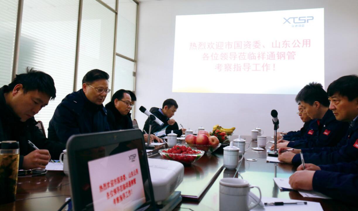 市國資委、山東公用有關(guān)領(lǐng)導(dǎo)就組建“混合經(jīng)濟(jì)體”到祥通鋼管考察調(diào)研