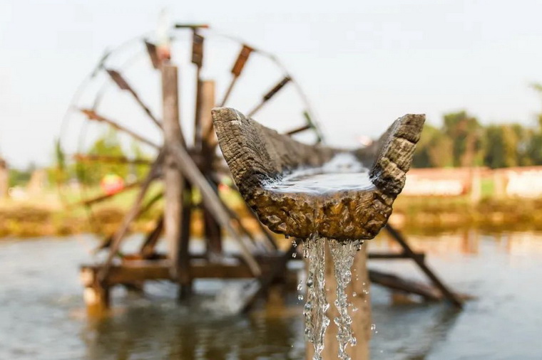 農(nóng)民忙著踏水車翻水