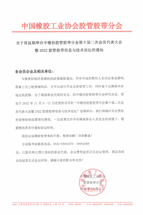 膠管膠帶貴陽年會(huì)再延期舉辦