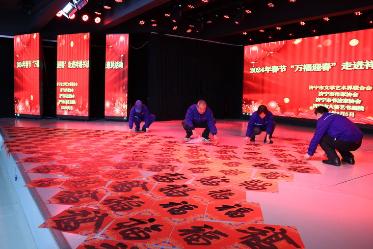 金兔留跡去,龍騰迎新春。2月5日,在甲辰龍年新春佳節(jié)來臨之際,為傳承中華優(yōu)秀傳統(tǒng)文化、營造歡樂祥和的節(jié)日氛圍,以書法藝術(shù)的形式,增強(qiáng)職工群眾文化獲得感、幸福感,由濟(jì)寧市文聯(lián)、濟(jì)寧市作協(xié)、濟(jì)寧市書協(xié)、大魯藝書畫院共同主辦的“2024年春節(jié)‘萬福迎春’走進(jìn)祥通書法惠民活動”在祥通多功能廳成功舉行。濟(jì)寧市文聯(lián)黨組書記、主席張作昌,濟(jì)寧市文聯(lián)黨組成員、副主席黃秀杰;濟(jì)寧市書協(xié)主席謝長偉,中國書協(xié)會員、濟(jì)寧市書協(xié)秘書處成員高衛(wèi)兵,濟(jì)寧市女書畫家協(xié)會秘書長晉丹;濟(jì)寧市作協(xié)主席張建魯,副主席范金泉、副秘書長周中祥,濟(jì)寧經(jīng)開區(qū)作協(xié)副主席紀(jì)秀目;大魯藝書畫院黨支部書記、常務(wù)副院長張瑞祥,大魯藝書畫院副院長王盡文、王大中,兗州區(qū)文聯(lián)原主席張金鵬和祥通職工代表、媒體記者齊聚一堂,現(xiàn)場題寫春聯(lián)福字,喜迎龍年春節(jié)。