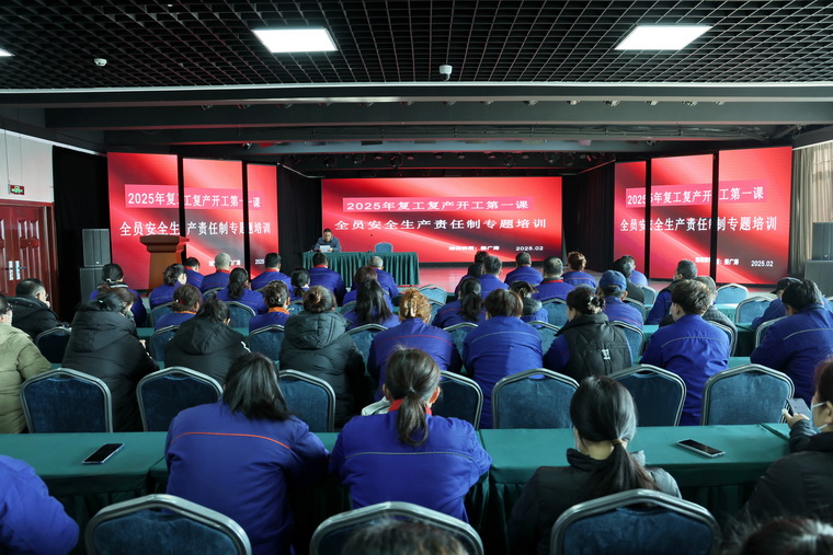 不負(fù)春光開好局,收心實干正當(dāng)時。大年初七開工第一天,為深入貫徹落實關(guān)于安全生產(chǎn)各項工作部署,強化安全生產(chǎn)主體責(zé)任落實,促進節(jié)后安全有序復(fù)工復(fù)產(chǎn)。2月4日上午,集團公司2025年春節(jié)安全生產(chǎn)“開工第一課”培訓(xùn)會在研發(fā)樓六樓多功能會議室舉行。集團公司領(lǐng)導(dǎo)班子成員和各部門、車間負(fù)責(zé)人及全體員工參加會議并共同觀看了安全警示教育片。會議由集團公司總經(jīng)理助理兼企管部經(jīng)理趙逢佩主持。